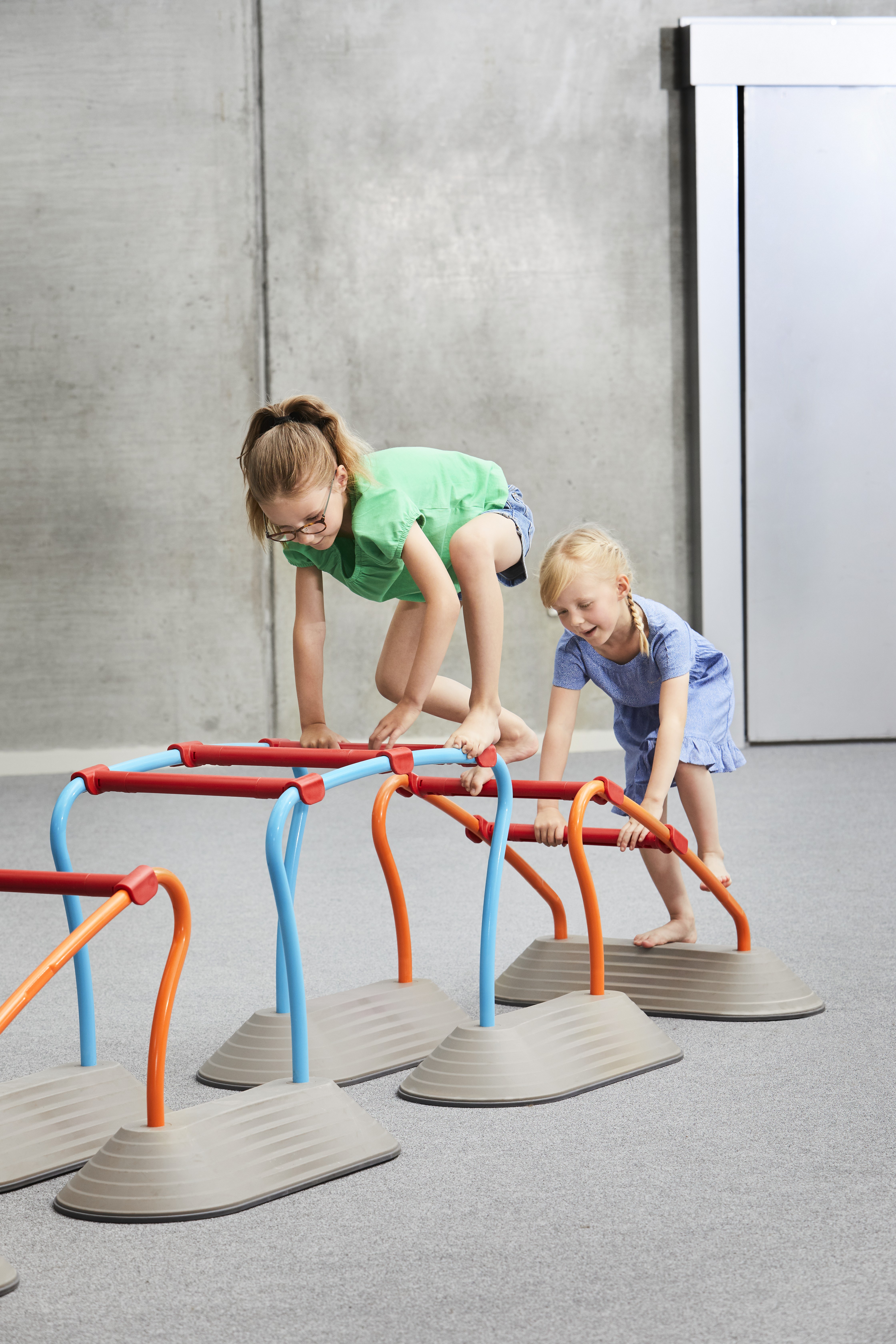 Mini Parkour® Starter Set is a compact, modular course that invites children to climb, step, balance, and crawl at approachable heights. The elements connect and separate quickly, so adults and children can vary layouts, increase complexity, and store the set with ease. Children strengthen muscles and flexibility while integrating sensory input, planning routes, and judging distances, and the course naturally becomes a small meeting place that fosters cooperation, turn‑taking, and lively problem‑solving. The 14 elements are suitable for use indoors and out. Ages 3–6.