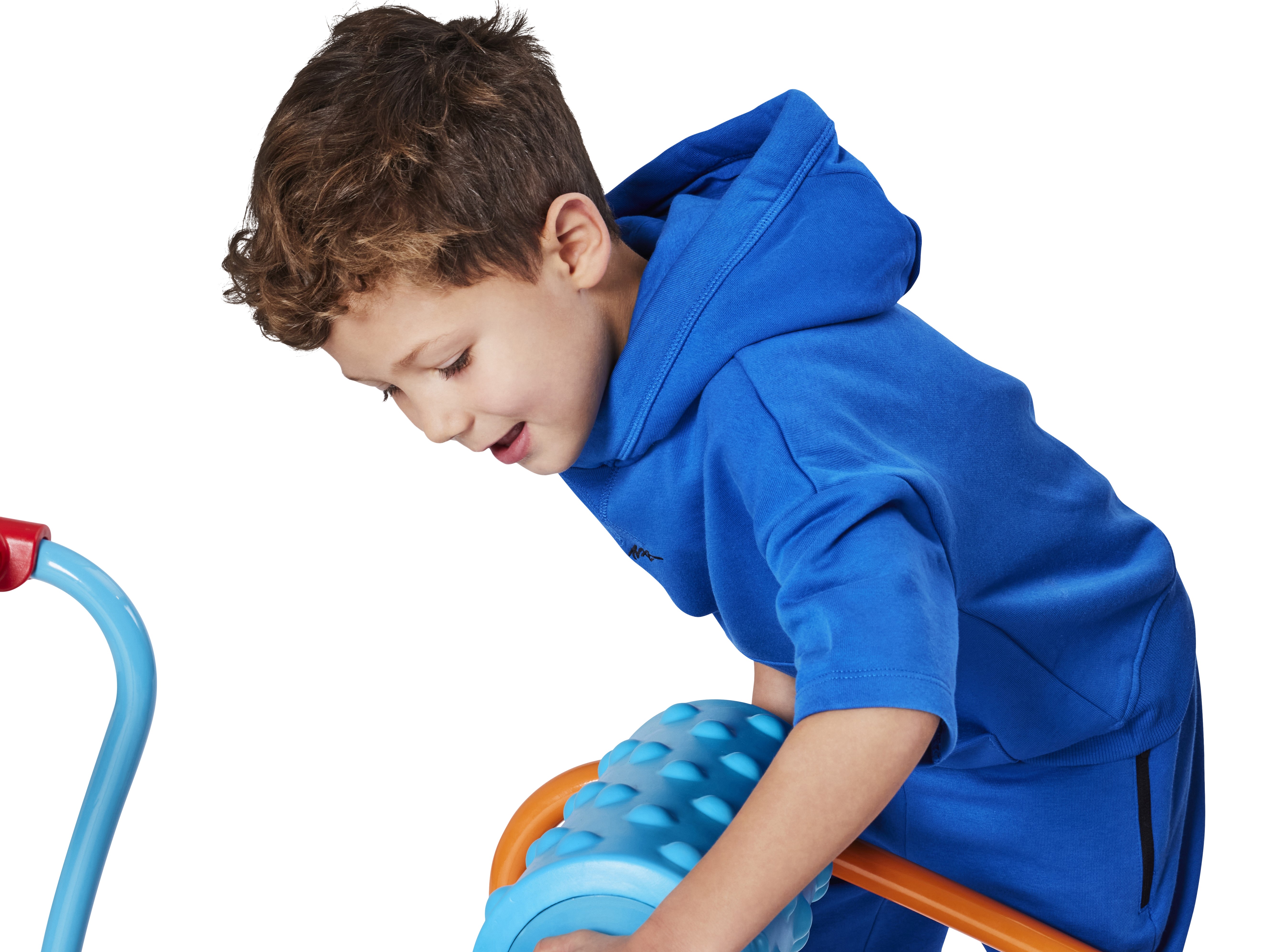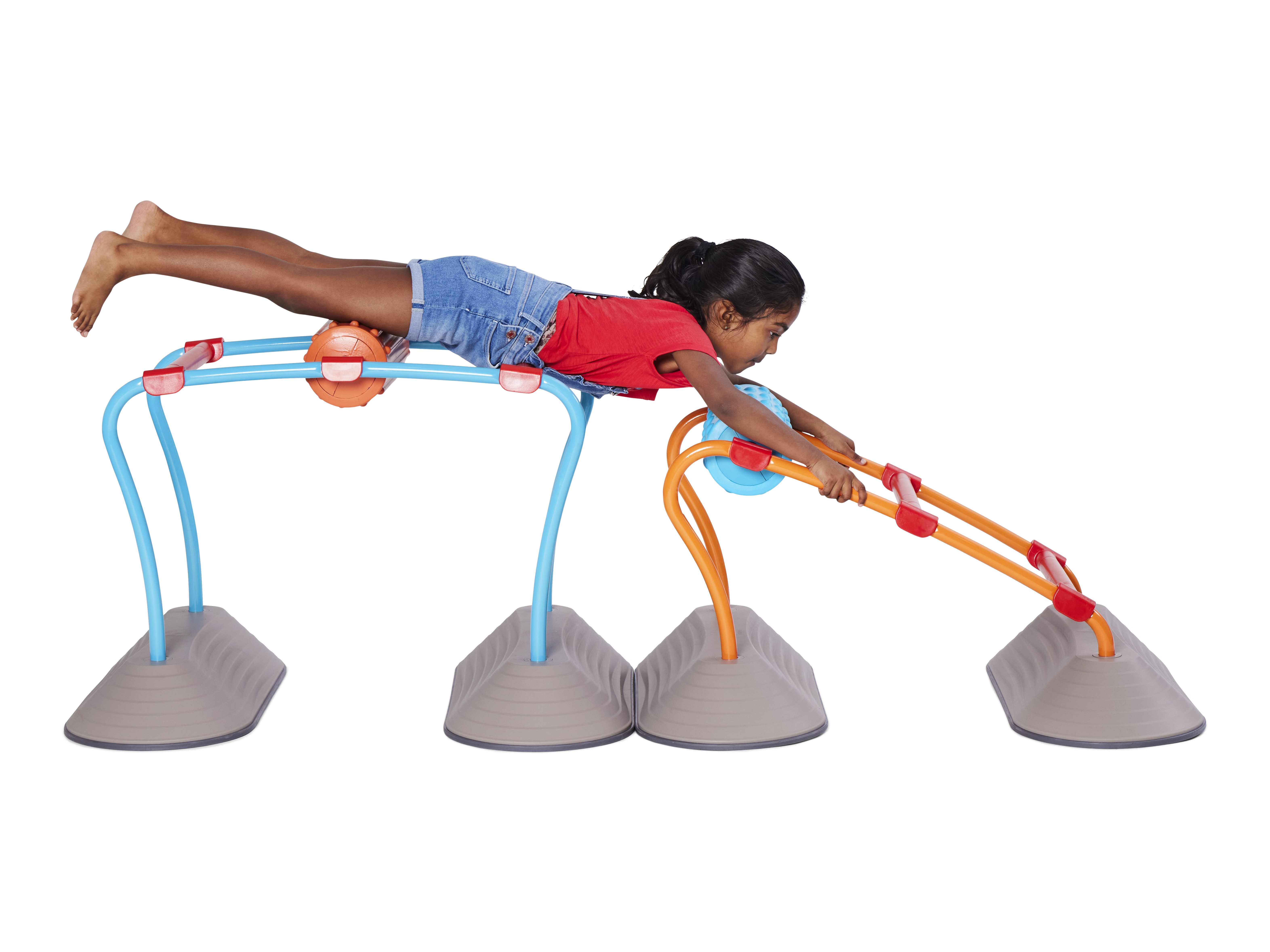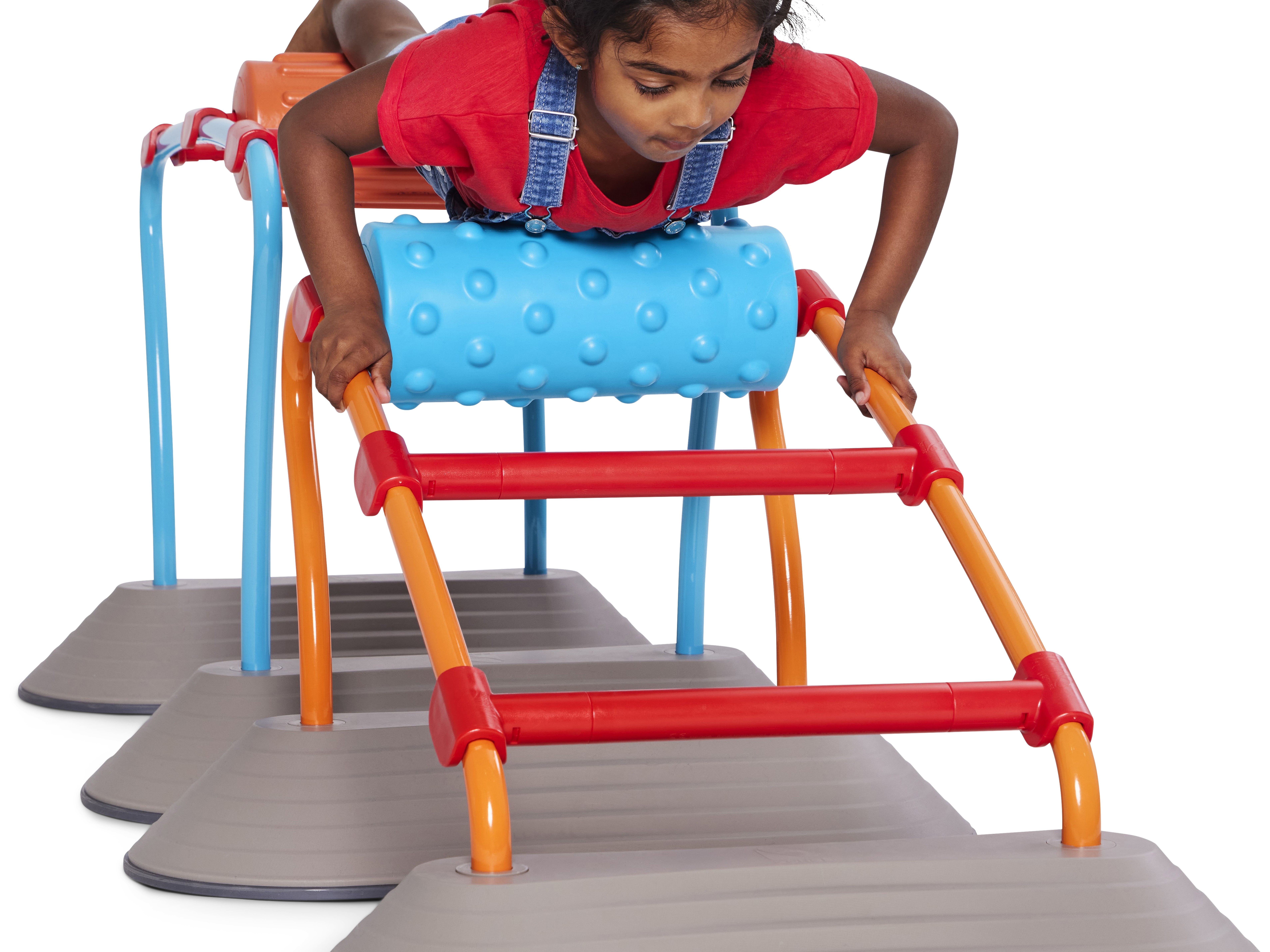 Each roller presents two distinct textures—ridges and dots—for pleasant tactile stimulation that keeps activities engaging. The smooth, even rotation supports controlled weight shifts, dynamic balance and coordinated transitions, whether used with hands or feet.