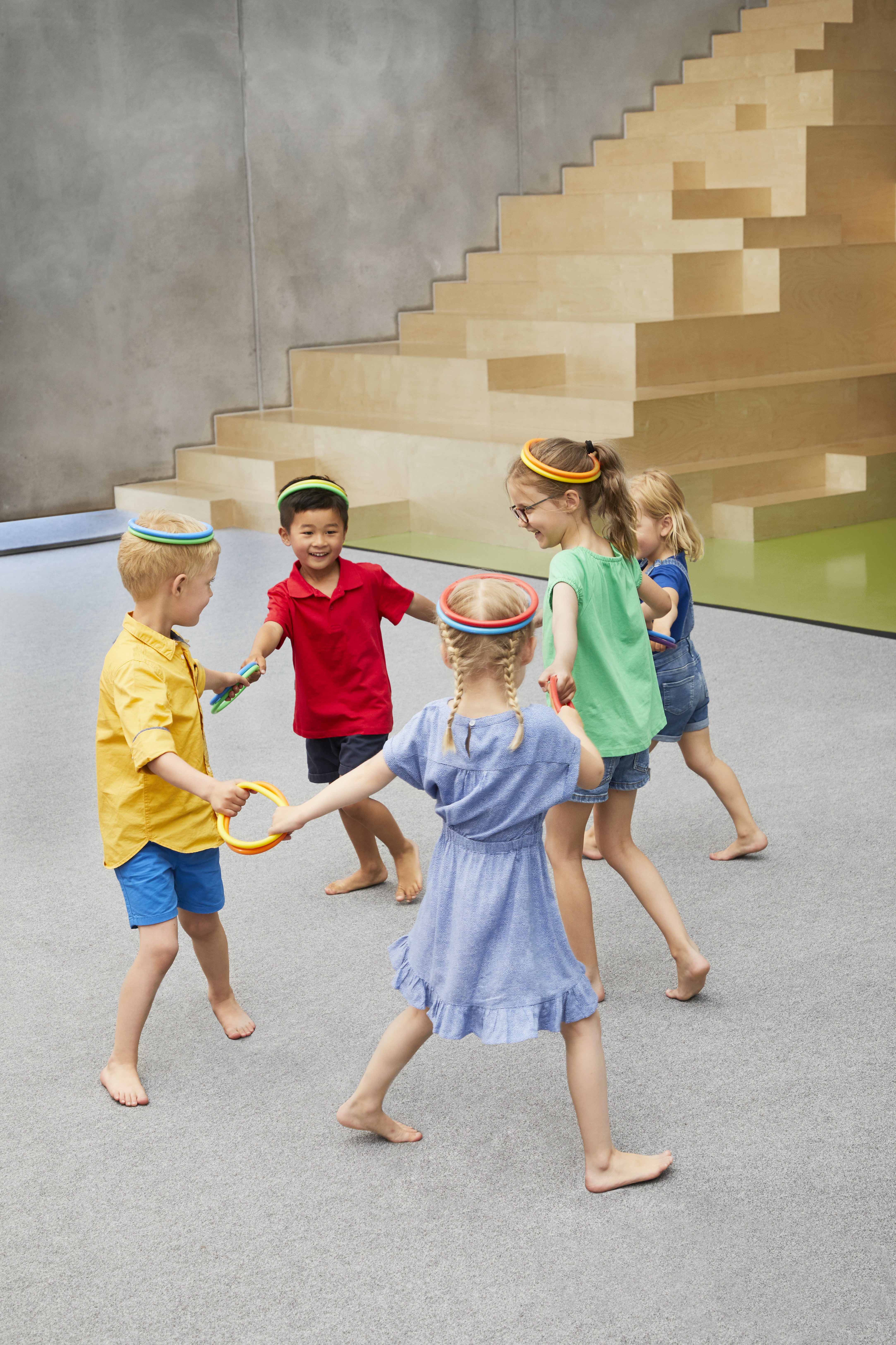 Equally suited to spontaneous play and structured sessions in rhythmics and gymnastics, the rings foster coordination, balance, agility, timing and body awareness. They support quiet focus in solo tasks as well as shared activities that invite cooperation. Made from soft TPE that is pleasant to touch and gentle on floors, with bright colours that remain engaging over time.