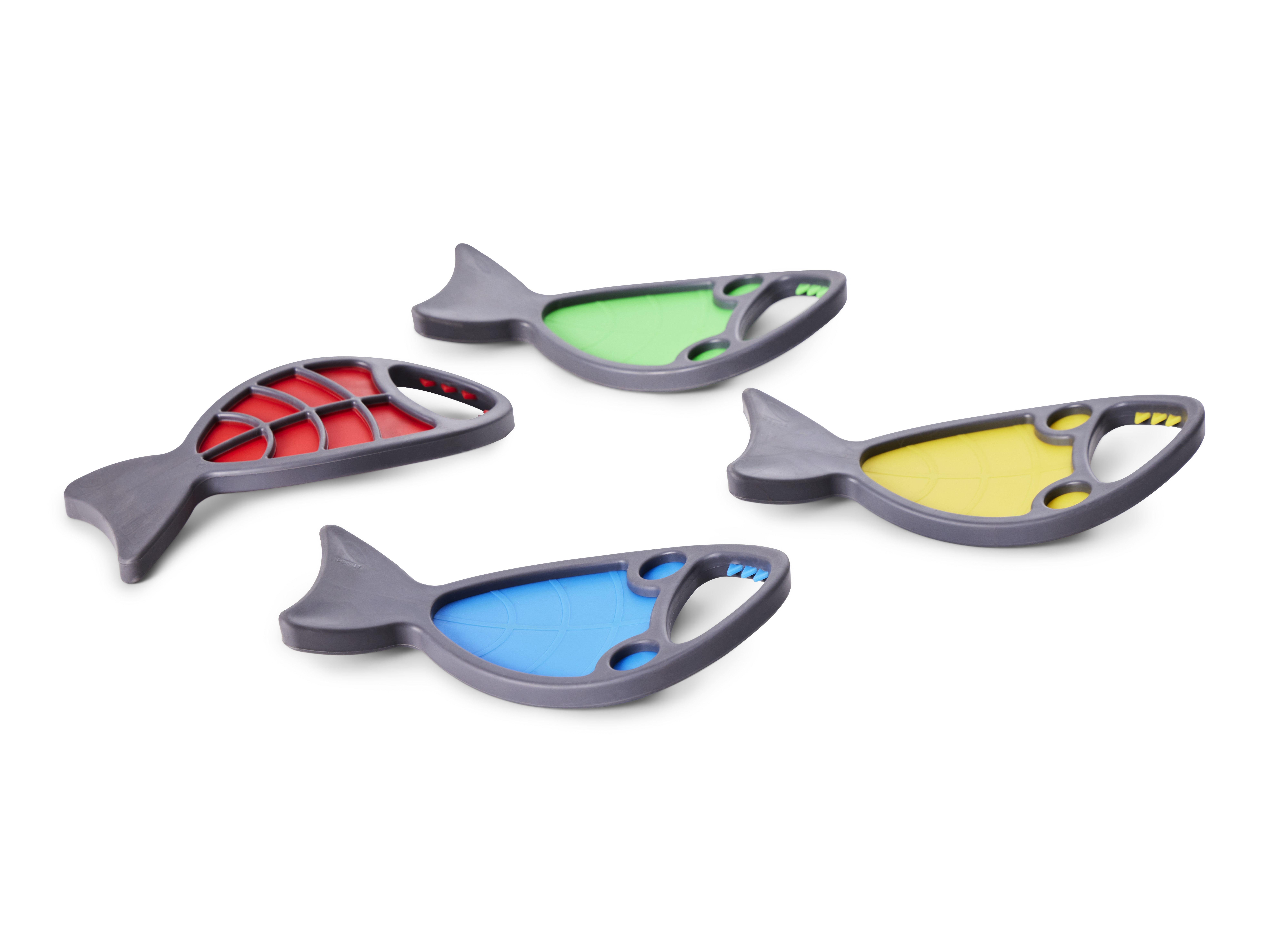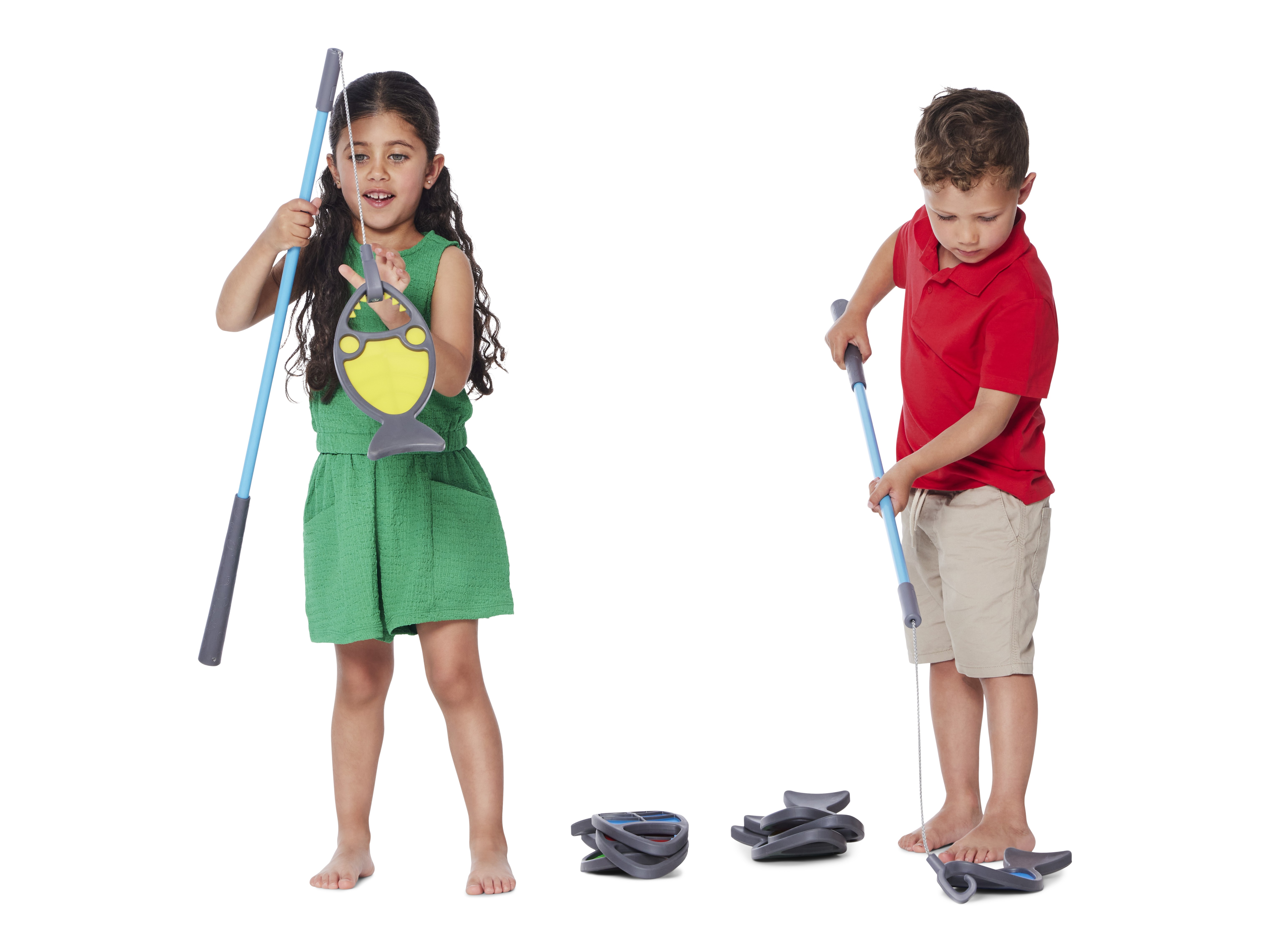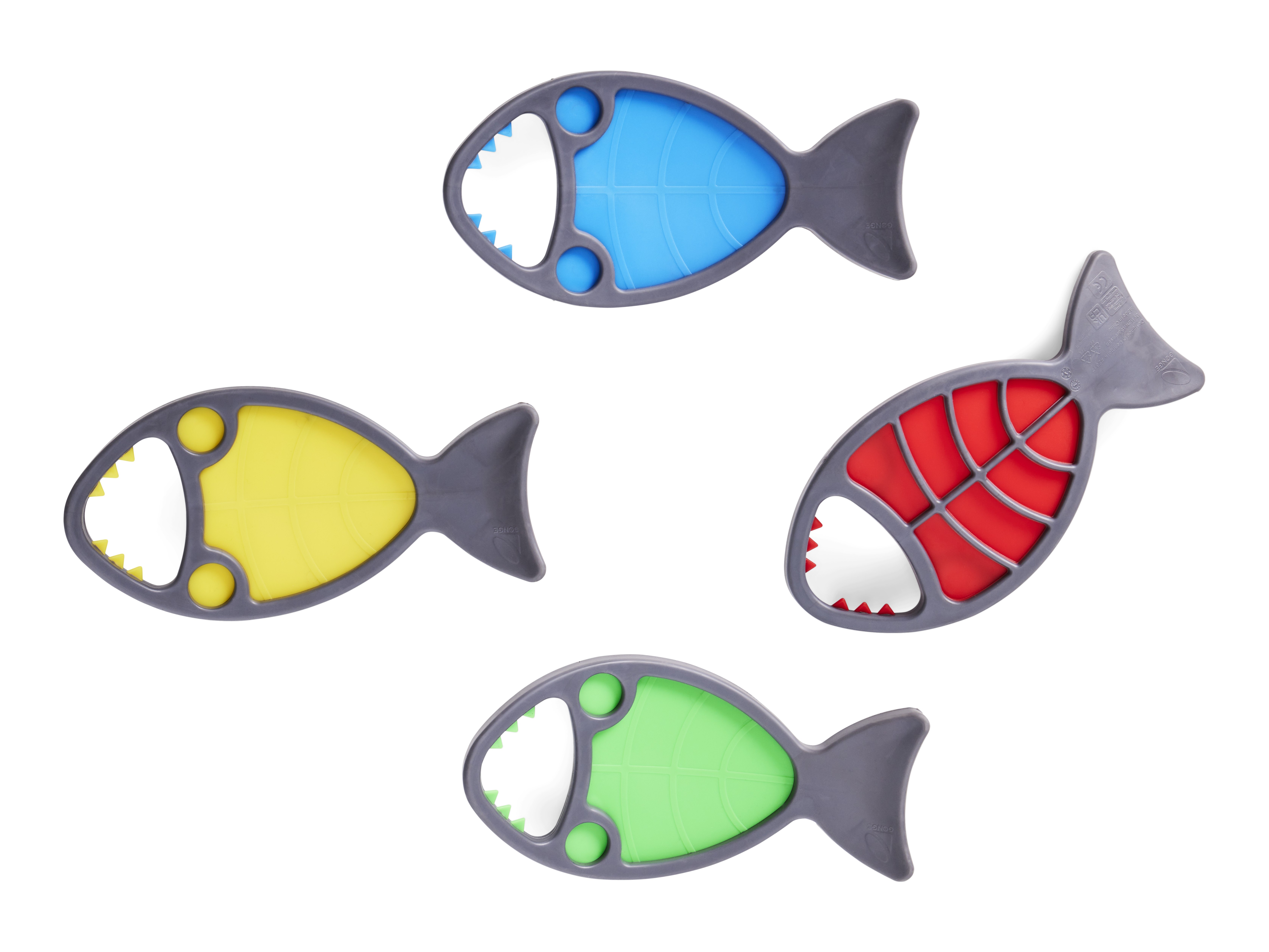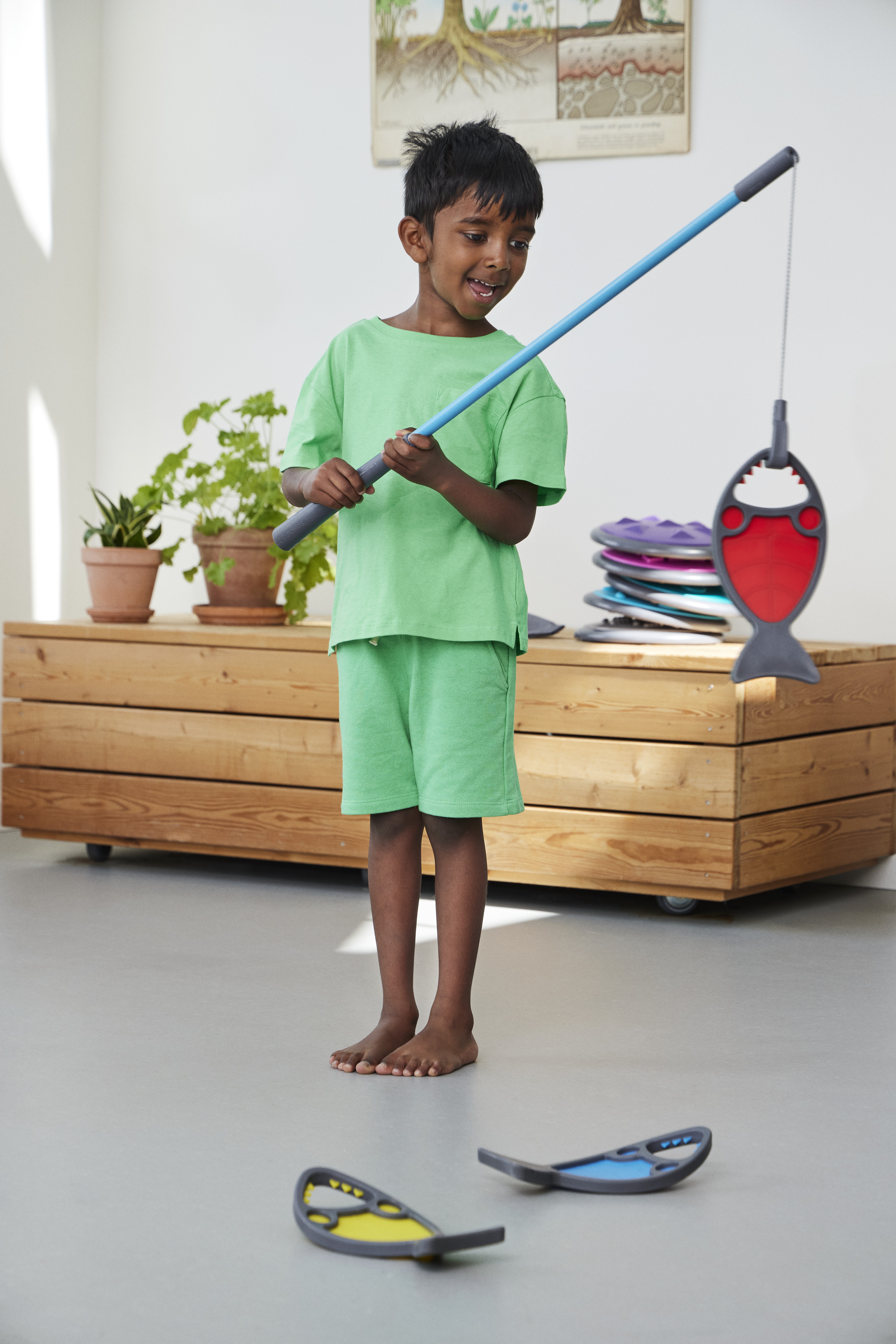 Hungry Fish invite children to aim, hook, and land their catch with the line‑and‑hook on the Fishing Rod (Art. 2315). The mouth opening forms a clear target that rewards steady hands, careful timing, and graded wrist movement. Play develops hand–eye coordination, visual tracking, and precision grip while sustaining attention. Children plan approaches, adjust their technique, and compare results, building problem‑solving, turn‑taking, and lively conversation. Bright colours spark engagement, and the soft, durable bodies sit comfortably in small hands.